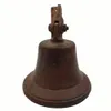 A bronze ships bell and bracket, lacking clapper, bottom diameter 15cm.