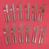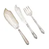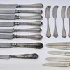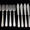 group of silver fish knives and forks