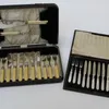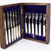 cased set of mother of pearl fruit knives and forks