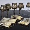 set of mother of pearl and silver fruit knives and forks