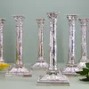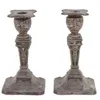 A pair of George V silver posy vases with pierced decoration and tapering faceted column on hexagonal base, height 14.5cm together with a pair of squat silver candlesticks. (4)