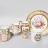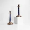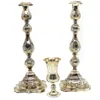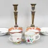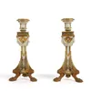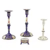 THREE GEORGE III ENAMEL CANDLESTICKS18TH CENTURY