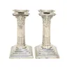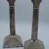 A pair of Weighted silver candlesticks with Corinthian column style tops, Birmingham 1914, Williams Ltd. 19.5cm high. Gross weight: approximately 912g