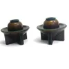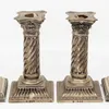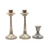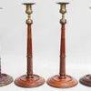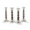 TWO PAIRS OF SILVER MOUNTED TURNED WOOD CANDLE STICKS