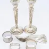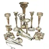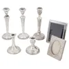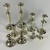 5 pairs of weighted silver candlesticks. Ranging from approx 21cm to 4.5cm.