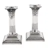 A pair of silver Corinthian column candlesticks, by Hawksworth, Eyre & Co Ltd, Sheffield 1903, of typical form with removable drip tray, raised upon weighted stepped square base, height 17.6cm. (gross…