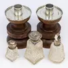A pair of silver dwarf candlesticks, by Henry Mathews, Birmingham 1905, height 9.5cm, together with a silver mounted cut glass bottle with stopper, by Henry Perkins & Sons, London 1922, height 20cm, a…
