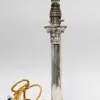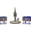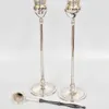 A SIVER PLATED URN SHAPED TABLE LAMP, 19TH CENTURY, TOGETHER WITH A PAIR OF METAL CANDLE HOLDERS
