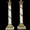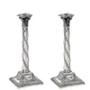 A matched pair of Victorian silver candlesticks, of Corinthian column design with spiral centres, with weighted bases, each engraved to sconces dating to 1891, hallmarked by Martin, Hall & Co, London,…