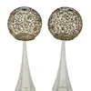 A LATE VICTORIAN PAIR OF SILVER FLOWER STANDS (6) — Each of twistover pear shaped form with floral and foliate embossed decoration, Sheffield 1894, weight 135 grams, with cranberry coloured glass drop…