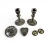 A pair of 17th century style German/Dutch embossed white metal candlesticks, with later Victorian removable sterling silver sconces. The sconces are each hallmarked: one for George Richards Elkington,…