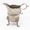 A George III Irish silver helmet shaped cream jug, having shaped rim, scrolled handle and three lion mask and paw feet, hallmarked Dublin, 1769, makers mark missing, approx. 11cm high. Weight approx. …