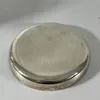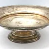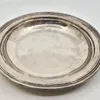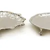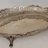 A footed white metal card tray. Stamped "Sterling silver 925" to the rim. No hallmarks present. Approximate diameter 20cm. Approximate weight: 303 grams/9.74 OzT.