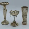 A George V silver sweet meat stand with pierced basket on triple wire column and stepped circular foot, Chester 1912. Together with two silver bud vases, the tallest 14cm high ( Chester 1908)