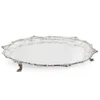 An Elizabeth II silver salver, of scrolled form with four claw feet, hallmarked by Bishton's Ltd, Birmingham, 1957, approx. 31cm diameter. Weight approx. 727.1 grams (23.3ozt) Further details: tarnish…