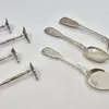 A SILVER TOASTRACK, A PAIR OF SILVER SMALL TODDY LADLES AND ANOTHER TODDY LADLE (4) — The small toastrack with a loop shaped handle, raised on four spherical feet, Birmingham 1925, weight 33 grams the…
