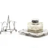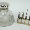 A cut glass silver topped inkwell and a silver toast rack, Both fully hallmarked. Toast rack: Sheffield 1932, Viners. Inkwell: Birmingham 1898, Horton & Allday. Toast rack: 55 grams.