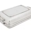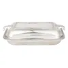 An Edwardian silver rectangular entrée dish, cover and handle, having gadrooned border and handle, hallmarked by Goldsmiths & Silversmiths Co Ltd, London, 1904, approx. 29cm wide x 13cm high. Weight: