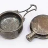 A Victorian small circular silver hip flask, screw top, hallmarked by William Summers, London, no date letter, approx. 9cm long, along with an Elizabeth II silver tea strainer and bowl, hallmarked by