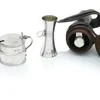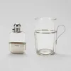 A SILVER MOUNTED GLASS SPIRIT FLASK AND A SILVER TEA GLASS HOLDER (3) — The glass spirit flask with a pull-off beaker base, the top mount Sheffield 1903, the beaker base, Sheffield 1906, height 10.5cm…