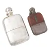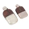 silver, leather and glass hip flask