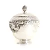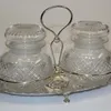 A Sterling silver 1903 Birmingham conserve holder with two cut glass lidded jars. Weight of silver 409gm