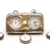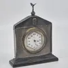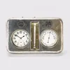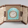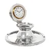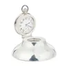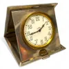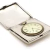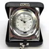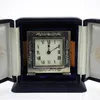 A Modern silver mounted folding travelling bedside alarm clock, by R&J Carr, with leather case and fitted cushion inside, silver hallmarked Sheffield, 2001, overall approx. 10.8cm long (case). Further…