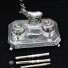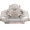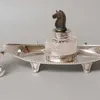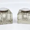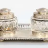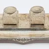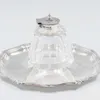 Edward VII Silver-Mounted Glass Inkwell With Timpiece by John Grinsell and Sons, Birmingham, 1909