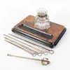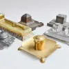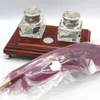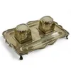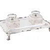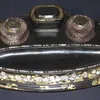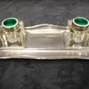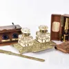 Brass and Glass Inkwell Set