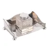A silver inkstand with single glass bottle raised on bun feet, 125g gross weight