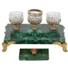 Rodrigues, Piccadilly. A brass and malachite Neo- Classical form inkstand, raised on a rectangular plinth. 21cm wide