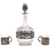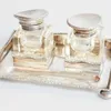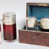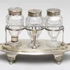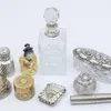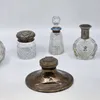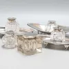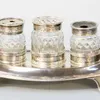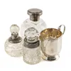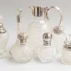 group of silver mounted cut glass bottles
