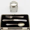 George V Silver Two-Bottle Inkstand, Maker's...