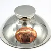 A novelty Edwardian silver inkwell, of domed form, having inset ladies pocket watch to cover (untested) and a copper mounted cartouche bearing initials RH to body, with weighted base and no liner, ink…