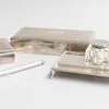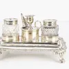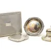 collection of silver desk items