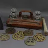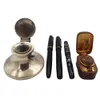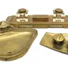 Selection of vintage/antique brass ink wells and blotter. Please refer to the images. Condition report; Most with glass or ceramic liners, however some are chipped.