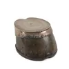 A VICTORIAN SILVER MOUNTED HOOF INKWELL — The hinged lid detailed Taglioni Died Novr 12th 1866, the horseshoe beneath iron, Birmingham 1874, maker Henry Bourne, with a drop-in glass inkwell, the mount…