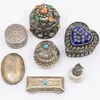 A small group of silver boxes comprising of: an early 20th century silver heart shaped pill box with cherub design, with 930 marks and import marks by Samuel Boyce Landeck, Sheffield, 1923, approx. 4c…