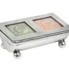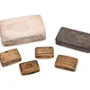 Two silver tobacco boxes and two silver desk boxes, largest approx 11cm wide. Weighable silver approx 123grams.
