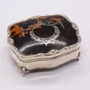 Tortoiseshell lidded sterling silver jewellery box with hallmarks for Birmingham 1918-19The lid rises to reveal the original yellow silk liningCondition:Some minor scratches to the tortoiseshellThe to…