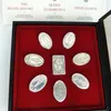 Franklin Mint Guards Regiments Silver Box Collection in display case, with some paperwork. Eight decorated silver boxes, each displaying a regimental soldier. Gross silver weight 205 grams.