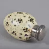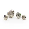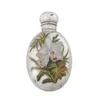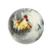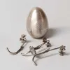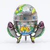 A 20th century probably Continental white metal egg shaped trinket pot, with detachable top, engine turned decoration and vibrant enamel designs of flowers and insects. With three fish shaped feet, ma…