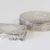 A silver soap box and pin tray, both with winged cherubs decoration, 150g