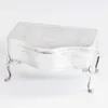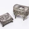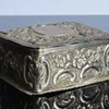 A converted late Victorian silver mounted base metal curling tong warming box now a trinket box, of usual rectangular form with profusely embossed and chased foliate design, with vacant cartouche, wit…