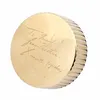 Cartier: a 9ct gold pill box, comprising a circular form with vertically reeded base, the pull off cover and D-shaped hinged handle, measuring approx 30 x 17mm, the base engraved with autograph 'To Ma…