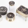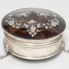 Edwardian silver and tortoiseshell pique work trinket box and circular box by William Comyns