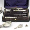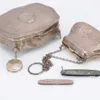 VICTORIAN SILVER RECTANGULAR TRINKET BOX AND FOUR FURTHER ITEMS (5)