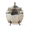 A George V silver hexagonal shaped tea caddy, with engraved initials to top and gilt interior, hallmarked by Barker Bros, Chester, 1925, approx. 7.4cm high. Weight approx. 161.5 grams (5.2ozt) Further…