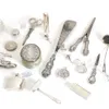 A collection of sterling silver, 925 and other pin cushions and other ornamental items. Comprising a sterling silver hedgehog pin cushion; a sterling pig pin cushion; a sterling silver shoe pin cushio…