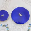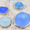 A George V silver and guilloche enamel circular compact, with mirror and powder area within, hallmarked to engine turned decoration by Joseph Gloster Ltd, Birmingham, 1921, approx. 7cm diameter, along…